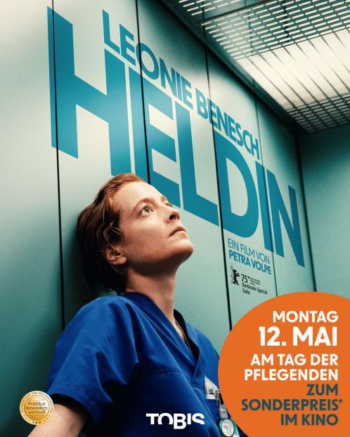 Zum Tag der Pflegenden hat der Filmverleih TOBIS eine spezielle Aktion parat: Mehr als 400 Kinos im Bundesgebiet nehmen den Film „Heldin“ noch einmal zum Sonderpreis (Preis abhängig vom jeweiligen Kino) ins Programm.