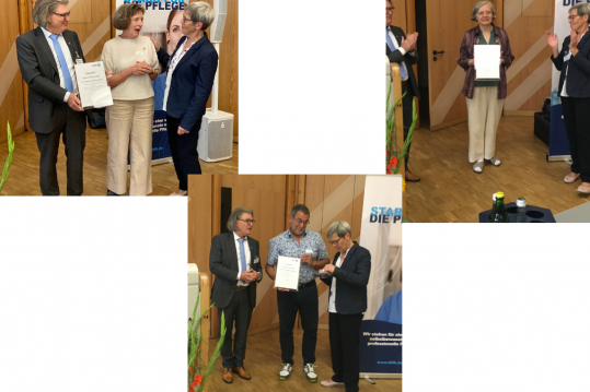 Während dieser Zeit engagierten sie sich in vielfältiger Weise im DBfK. Dafür wurde ihnen bei der Mitgliederversammlung des DBfK Südwest die Goldene Ehrennadel verliehen. Andrea Kiefer, Vorsitzende des DBfK Südwest und Laudatorin bei der Ehrung, attestierte den drei Mitgliedern die nötige Geduld und das Beharrungsvermögen, das bei der Durchsetzung berufspolitischer Ziele erforderlich sei. Ob als Delegierte:r oder Vorstandsmitglied, als Stimme der professionell Pflegenden in zahlreichen Gremien, bei Pflegetreffs und Veranstaltungen, als Dozent:in oder bei der Betreuung des DBfK-Standes auf Messen oder Kongressen: Das ehrenamtliche Engagement der Geehrten sei beeindruckend, so Kiefer. Die anwesenden Mitglieder bestätigten dies mit stehenden Ovationen.