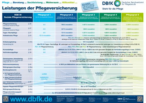 Bleib informiert und nutze das DBfK-Poster „Leistungen der Pflegeversicherung“ und das erläuternde Infoblatt als praktischen Überblick für den Arbeitsalltag.