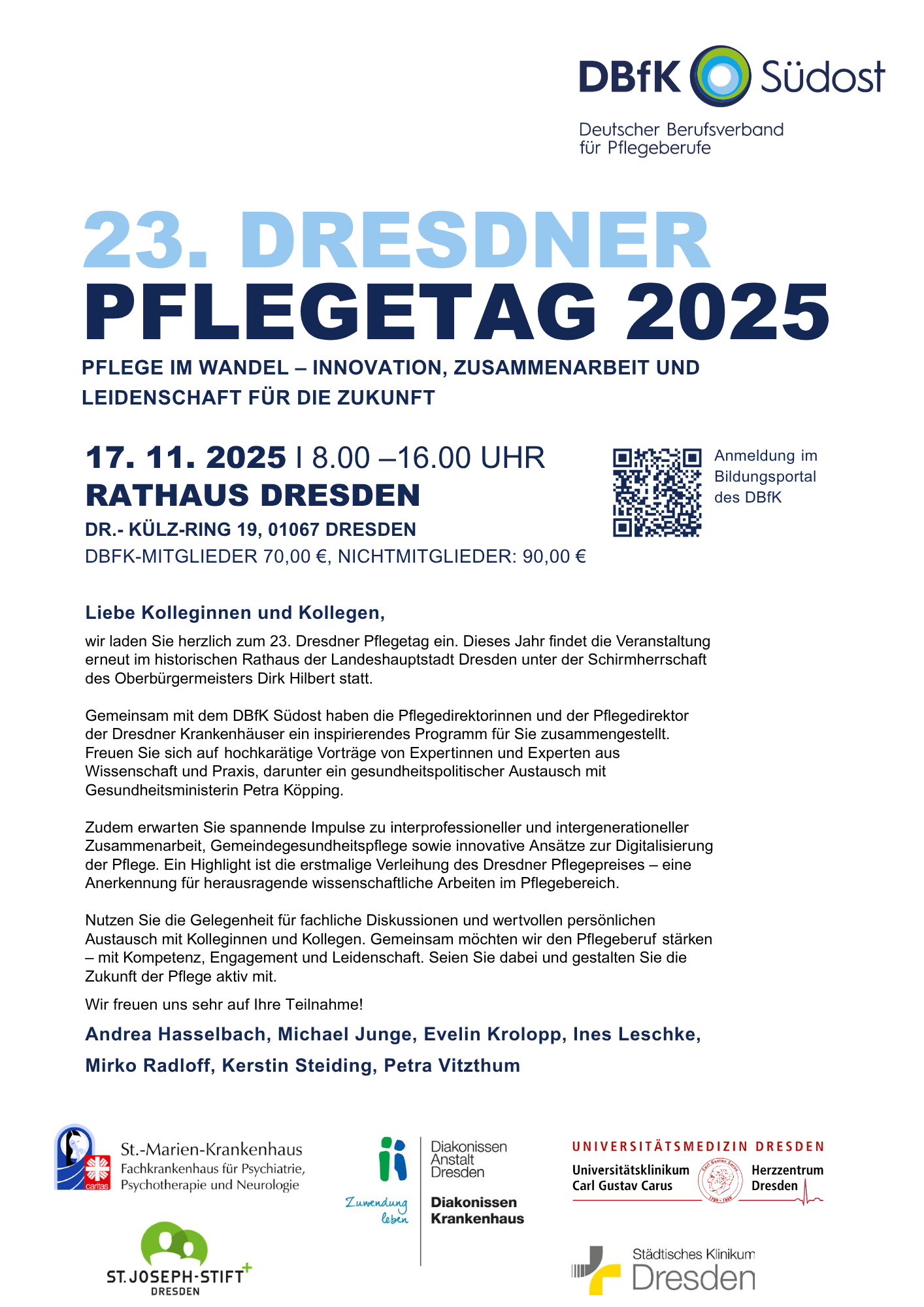 Die Rücktrittserklärung bedarf der Schriftform. Ohne schriftliche Rücktrittserklärung werden die vollen Teilnahmegebühren in Rechnung gestellt. Bei Rücktritt innerhalb 21 Tagen bis 7. Tag vor Veranstaltungsbeginn werden 30 % der Teilnahmegebühren als Bearbeitungsgebühr berechnet. Ab dem 6. Tag vor Beginn sind die vollen Teilnahmegebühren zu entrichten. Der DBfK ist berechtigt, jederzeit den Rücktritt zur Anmeldung zu erklären, wenn nach Einschätzung des DBfK eine wirtschaftliche Durchführung nicht möglich ist.