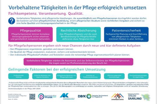 Marc Helfen, LPR-Präsident und DBfK-Mitglied ist der Autor eines Plakates, das die wichtigsten Informationen zu Vorbehaltsaufgaben knapp und übersichtlich zusammenfasst. Das Sozialministerium des Saarlandes hat die Plakate in Druck gegeben und den dortigen Einrichtungen zur Verfügung gestellt.