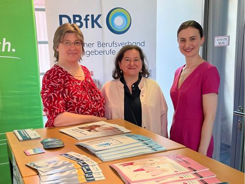 Los ging es mit dem 15. Symposium Pflegeausbildung des Bildungszentrums für Gesundheitsberufe in Magdeburg am 20. Mai. Elizabeth Tollenaere (im Foto r.), Vizepräsidentin des DBfK, hielt die Keynote zu kultursensibler Pflege, der DBfK Südost war mit einem Stand vor Ort. Mit im Bild: Christina Heinze, pädagog. Geschäftsführerin des Bildungszentrums für Gesundheitsberufe Magdeburg.